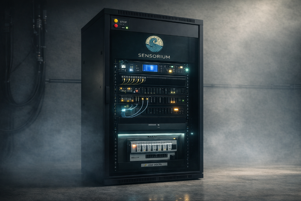 Arquitetura técnica centralizada que integra controlo, segurança e sincronização multissensorial.